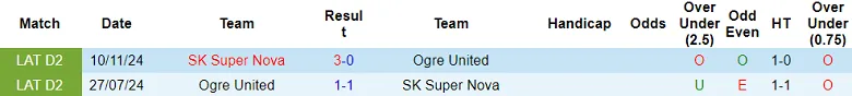 Thống kê phong độ, lịch sử đối đầu của Ogre United đấu vs Super Nova
