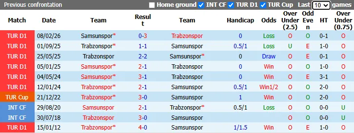 Lịch sử đối đầu đang nghiêng về phía đội khách khi họ đã bất bại trong 3 lần gặp gỡ gần nhất với Samsunspor, trong đó có chiến thắng 3-0 ngay trên sân của Samsunspor vào tháng 2/2026. Những thông tin này cho thấy khả năng giành chiến thắng của Trabzonspor là rất khả quan.