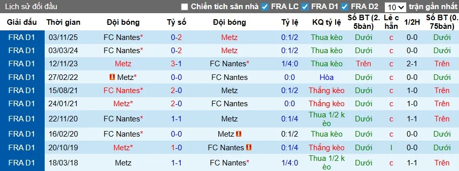 Thống kê phong độ, lịch sử đối đầu của Metz vs Nantes