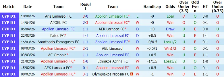 – Kết quả 10 trận gần nhất của Apollon
