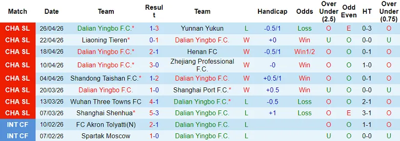– Thống kê kết quả 10 trận gần nhất của Dalian Yingbo.