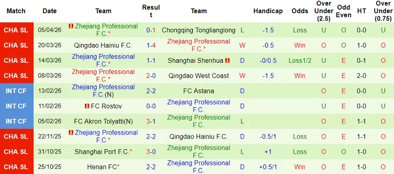 – Kết quả 10 trận gần nhất của Zhejiang.