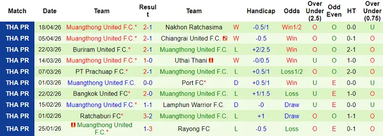 – Kết quả 10 trận gần nhất của Muangthong United.