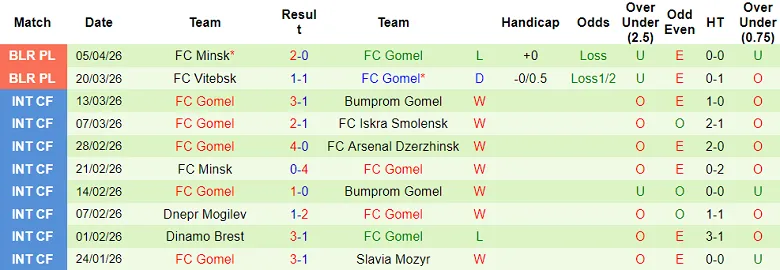 – Thống kê kết quả 10 trận gần nhất của Gomel
