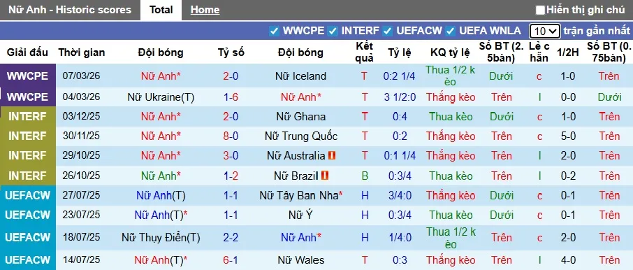 Đội nữ Anh đang là một lựa chọn đầu tư tương đối an toàn trong thời gian gần đây, khi họ mang lại niềm vui cho các nhà đầu tư châu Á ở 3/5 trận đấu gần nhất trên mọi đấu trường. Ngược lại, đội nữ Tây Ban Nha lại có phong độ khá tệ, khi thua kèo châu Á 7/9 trận vừa qua và 2/3 trận đối đầu gần nhất.