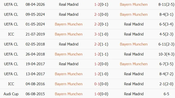 Thống kê phong độ, lịch sử đối đầu của Bayern Munich vs Real Madrid