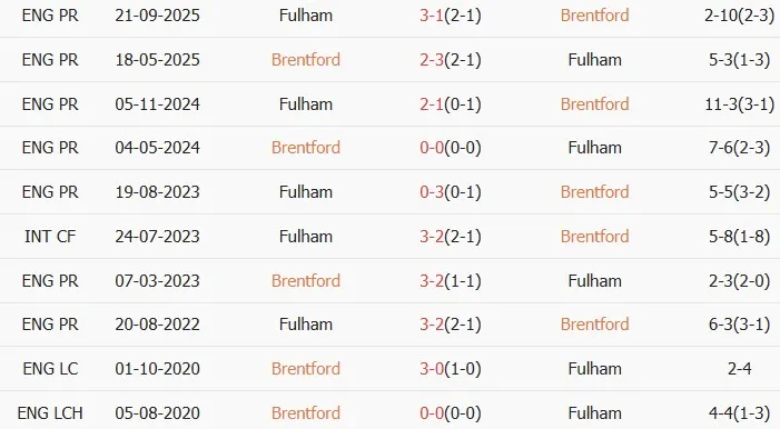 Thống kê phong độ, lịch sử đối đầu của Brentford vs Fulham
