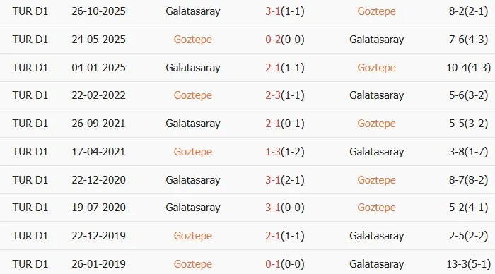 Thống kê phong độ, lịch sử đối đầu của Goztepe vs Galatasaray
