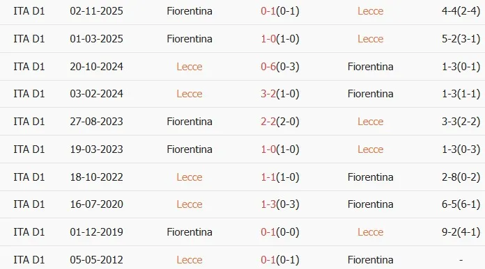 Lịch sử đối đầu giữa Lecce và Fiorentina