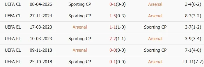 Thống kê phong độ, lịch sử đối đầu của Arsenal vs Sporting CP
