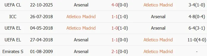 Lịch sử đối đầu giữa Atletico Madrid và Arsenal