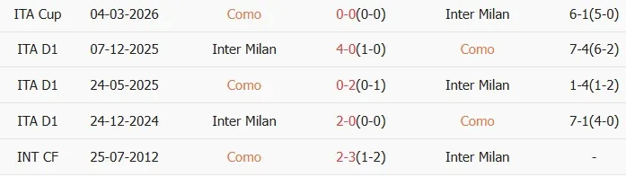 Thống kê phong độ, lịch sử đối đầu của Como vs Inter Milan