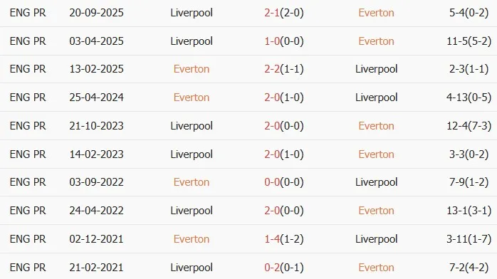 Thống kê phong độ, lịch sử đối đầu của Everton vs Liverpool