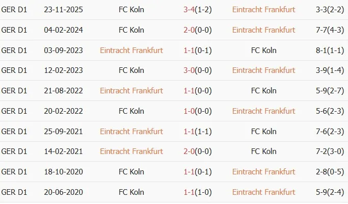 Thống kê phong độ, lịch sử đối đầu của Frankfurt vs Koln