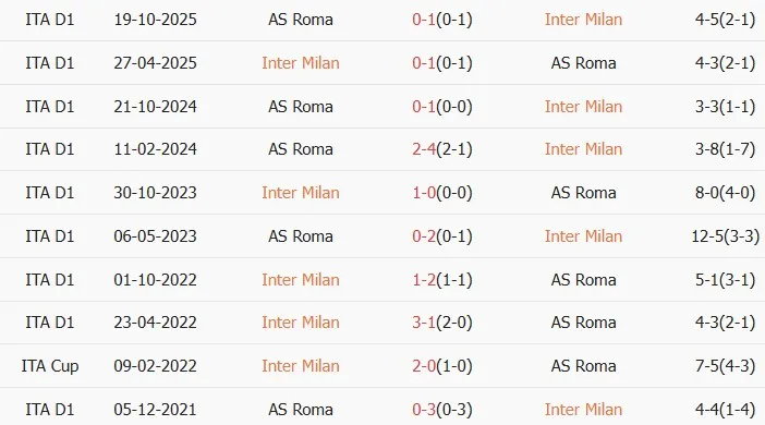 Lịch sử đối đầu Inter Milan vs AS Roma