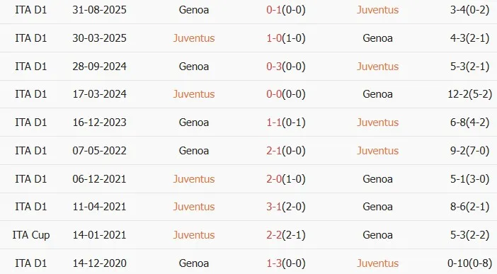 Ngược lại, Genoa không có xu hướng chơi đôi công khi đối đầu với các đội bóng mạnh. Họ thường lùi sâu đội hình, tập trung vào phòng ngự và hạn chế tối đa khoảng trống. Điều này dẫn đến khả năng tạo ra phạt góc của Genoa trong hiệp 1 rất hạn chế, nhiều trận chỉ có 0 hoặc 1 tình huống. Với mức chấp lên tới 0:2, Juventus rõ ràng được đánh giá cao hơn.