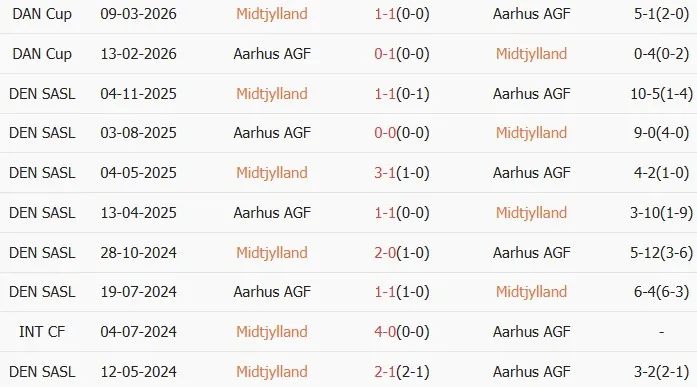 Thống kê phong độ, lịch sử đối đầu của Midtjylland vs Aarhus