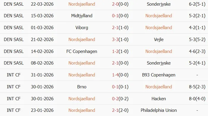 Thống kê phong độ 10 trận gần nhất của Nordsjaelland