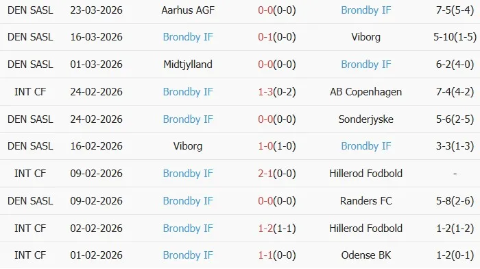 Thống kê phong độ 10 trận gần nhất của Brondby