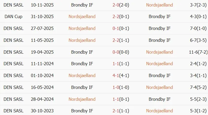 Lịch sử đối đầu giữa Nordsjaelland và Brondby