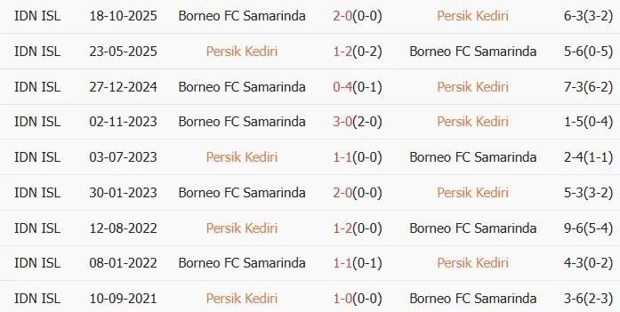 Lịch sử đối đầu Persik Kediri vs Borneo