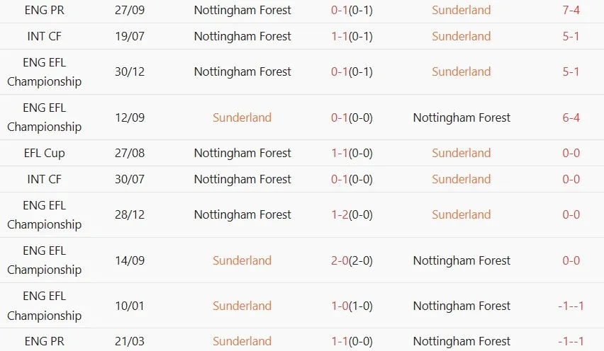 Thống kê phong độ, lịch sử đối đầu của Sunderland vs Nottingham