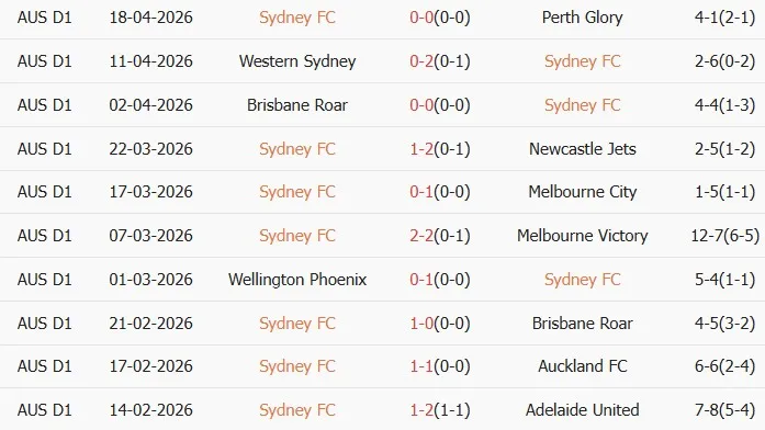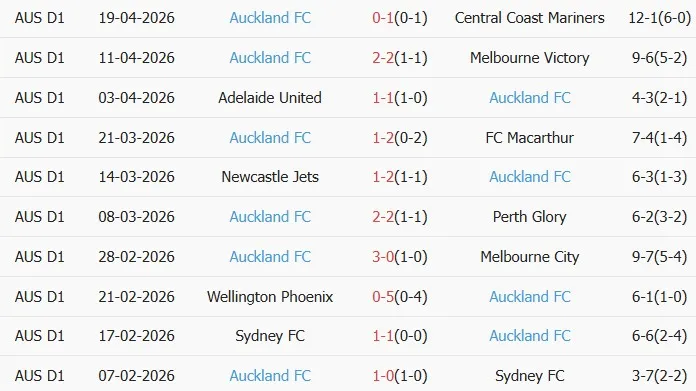 Thống kê phong độ, lịch sử đối đầu của Sydney vs Auckland