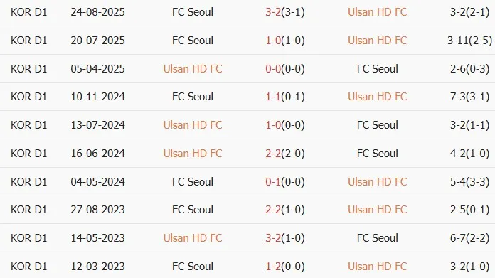 Lịch sử đối đầu giữa Ulsan HD và Seoul