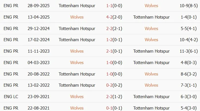 Lịch sử đối đầu giữa Wolves và Tottenham