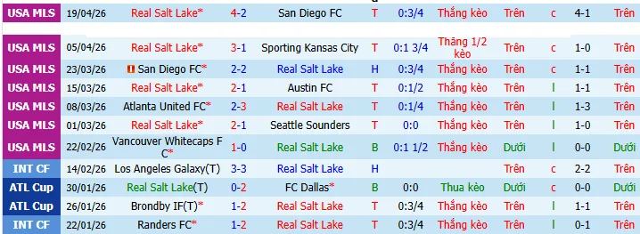 + Salt Lake đã thắng 9 và chỉ thua 1 trong 10 trận gần đây theo kèo châu Á.