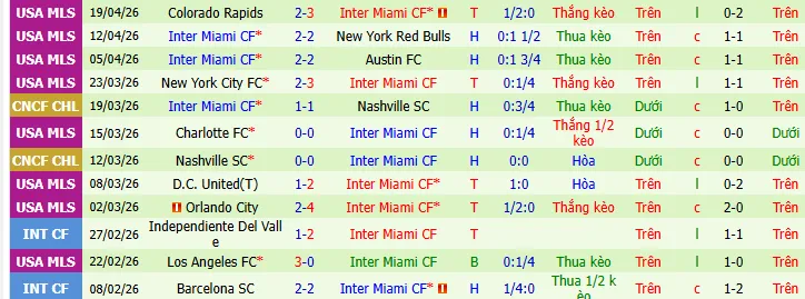 + Inter Miami thắng 8, hòa 1 và thua 8 trong 17 trận gần nhất trên sân khách theo kèo châu Á.