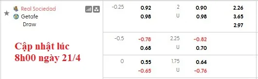 Soi kèo tài xỉu Sociedad đấu vs Getafe
