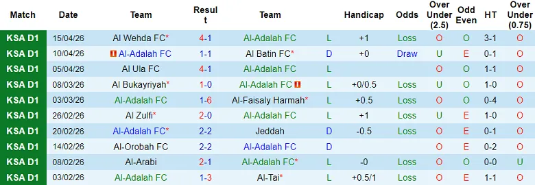 – Kết quả 10 trận gần nhất của Al Adalah.