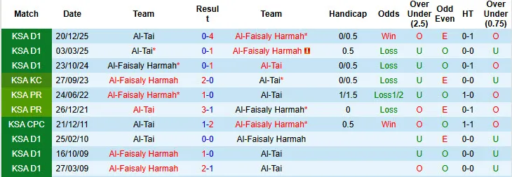 Al-Faisaly Harmah đã giành chiến thắng trong 8/11 trận gần đây khi đối đầu với Al-Tai. Họ cũng có 7/9 trận thắng gần nhất. Al-Tai đã thua 2/3 trận sân khách gần đây và được xem là lựa chọn mạo hiểm trong trận đấu xa nhà này.