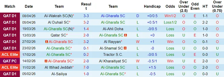 Al Gharafa cũng đã thua kèo lẫn tỷ số ở 2/3 trận sân nhà gần đây trong khuôn khổ giải VĐQG Qatar. Những thống kê không mấy khả quan này càng làm cho Al Gharafa trở thành một lựa chọn thiếu tin cậy.
