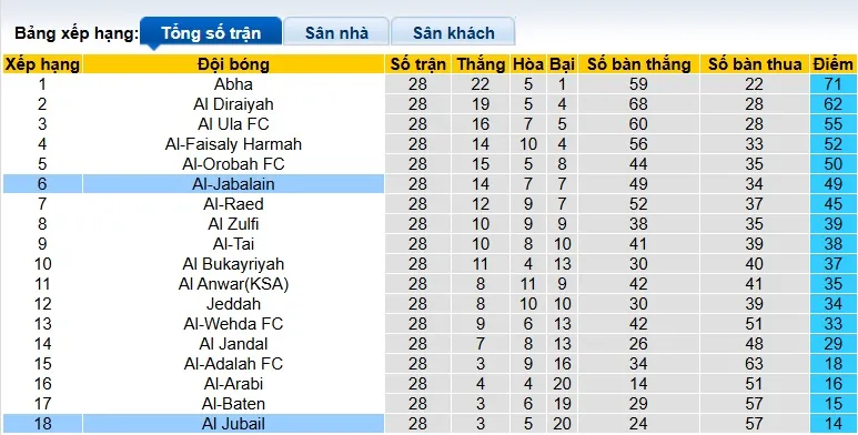 Tuy nhiên, trận thua trước Al Diraiyah gần đây đang là dấu hiệu cảnh báo nghiêm trọng cho đội chủ nhà. Al-Jabalain hiện chỉ còn cách đội bám đuổi phía sau 4 điểm khi giải đấu còn 6 vòng nữa mới kết thúc. Họ cần nhanh chóng tìm lại phong độ chiến thắng nếu không muốn đánh mất suất đá play-off thăng hạng.