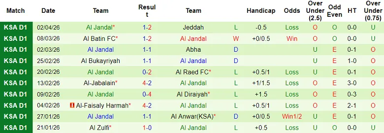 – Kết quả 10 trận gần nhất của Al Jandal.