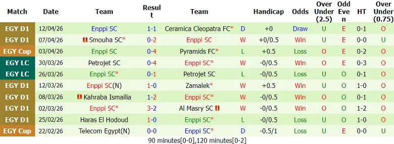 Thống kê về phong độ và lịch sử đối đầu giữa Al Masry và ENPPI.