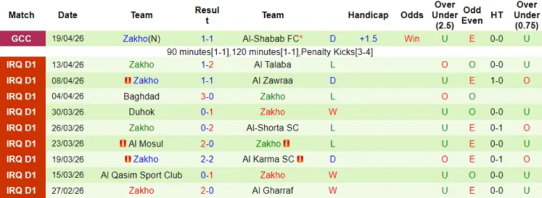 – Thống kê kết quả 10 trận gần đây của Zakho
