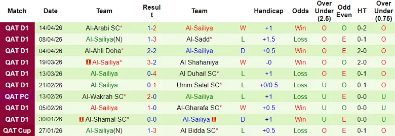 – Kết quả 10 trận gần nhất của Al Sailiya