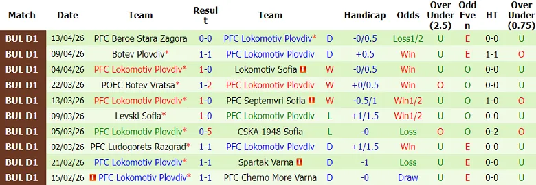 – Thống kê kết quả 10 trận gần nhất của Lokomotiv Plovdiv.