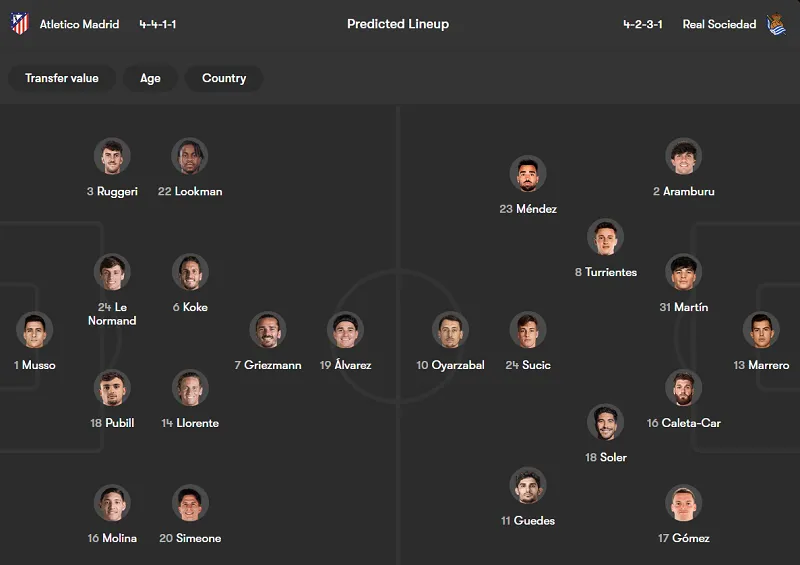 Phân tích tỷ lệ bóng đá, soi kèo Atletico Madrid vs Real Sociedad
