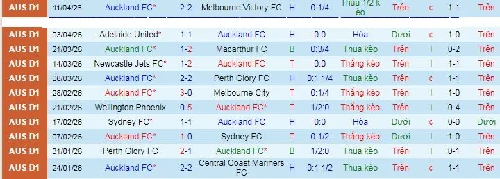 + Trong 5 trận gần đây, Auckland thua 3, hòa 1 và thắng 1 theo kèo châu Á.