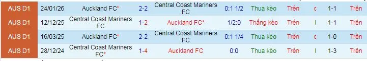 + Auckland đã thua kèo châu Á cả 2 trận tiếp đón Central Coast Mariners trên sân nhà.