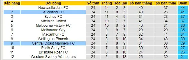 Dự đoán tỷ lệ bóng đá, soi kèo Auckland đấu với Central Coast Mariners