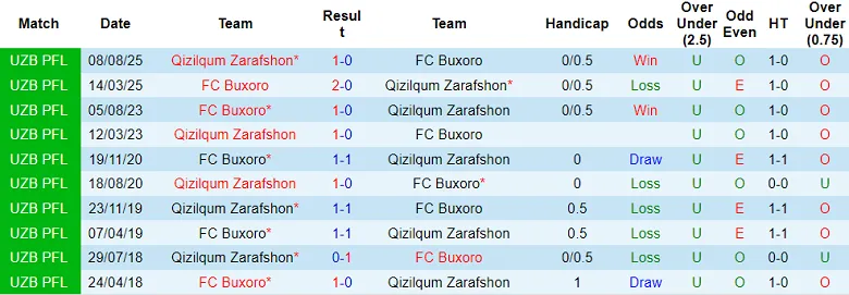 Tất cả 7 lần Buxoro tiếp đón Qizilqum tại Uzbekistan Super League kể từ tháng 9/2016 đều không có trận nào ghi quá 2 bàn thắng. Kịch bản quen thuộc này dự kiến sẽ tiếp tục diễn ra trong cuộc đối đầu ở vòng 6 mùa giải 2026.