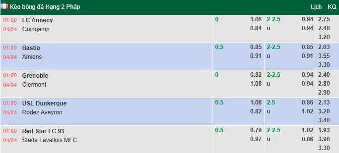 🏆 KQBD Ligue 2 🕐 01h00 ngày 04/04 Nhận định bóng đá