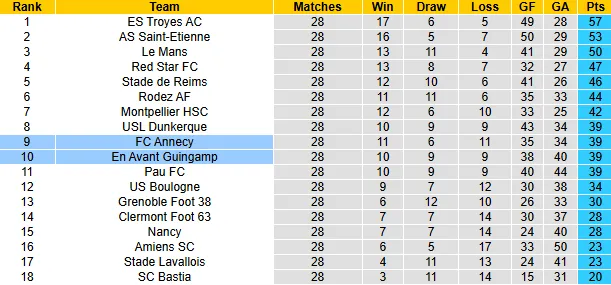 Thống kê cho thấy Guingamp là một trong những đội bóng có lối chơi thực dụng nhất Ligue 2 mùa này. 4/5 trận gần đây của đội khách đều có kết quả Xỉu. Trong khi đó, Annecy cũng thường chơi chặt chẽ khi đối đầu với các đối thủ ngang tầm.