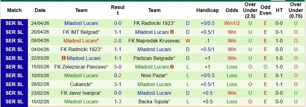 Backa Topola đã thắng kèo trong 2 trận gần đây khi đối đầu với Mladost Lucani. Họ cũng thắng kèo 3 trong 4 trận gần nhất trên mọi đấu trường. Trong khi đó, Mladost Lucani đã thua kèo tới 7 lần trong 12 trận sân khách vừa qua có cược chấp.