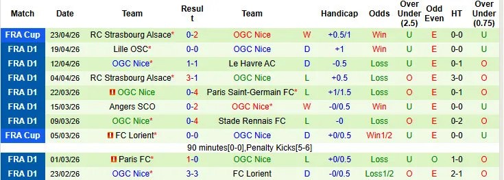 Marseille chỉ có 2 lần thắng kèo trong 6 trận gần nhất đối đầu với Nice. Họ đã thua kèo tới 12 lần trong 19 trận gần đây có kèo chấp. Ngược lại, Nice đã thắng kèo trong 2 lượt trận gần nhất ở mọi đấu trường.